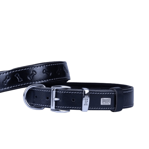 Doggie Konfor Deri Kemik Desenli Boyun Tasması Siyah 2,5X37-45Cm